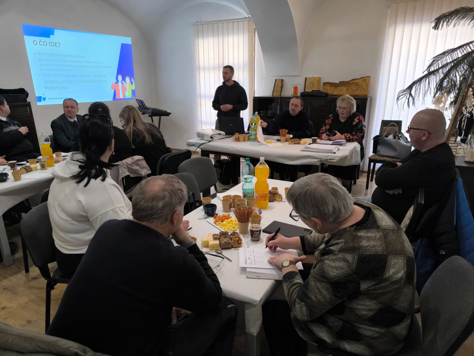 Následne sa duchovní presunuli do priestorov farského úradu kde sme si odovzdali informácie interného charakteru. Súčasťou SPK bolo aj predstavenie brožúrky Trainne, príručky pre prácu s mládežou, ktorú nám predstavil Ing. Gabriel Novák, člen CZ ECAV Bardejov, pracovník pre prácu s mládežou; bolo to pre nás veľmi zaujímavé, dozvedeli sme sa mnohé záležitosti, na ktoré je potrebné myslieť pri práci s deťmi, mládežou ako aj pri organizovaní výletov či táborov; spolu sme si zahrali aj jednu hru, ktorú určite viacerí z nás využijú aj vo svojej praxi.